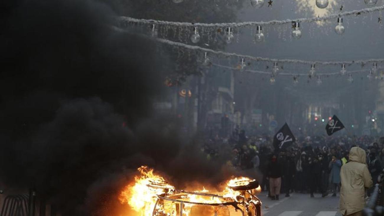 Polizisten wurden mit steinen angegriffen, autos angesteckt.
